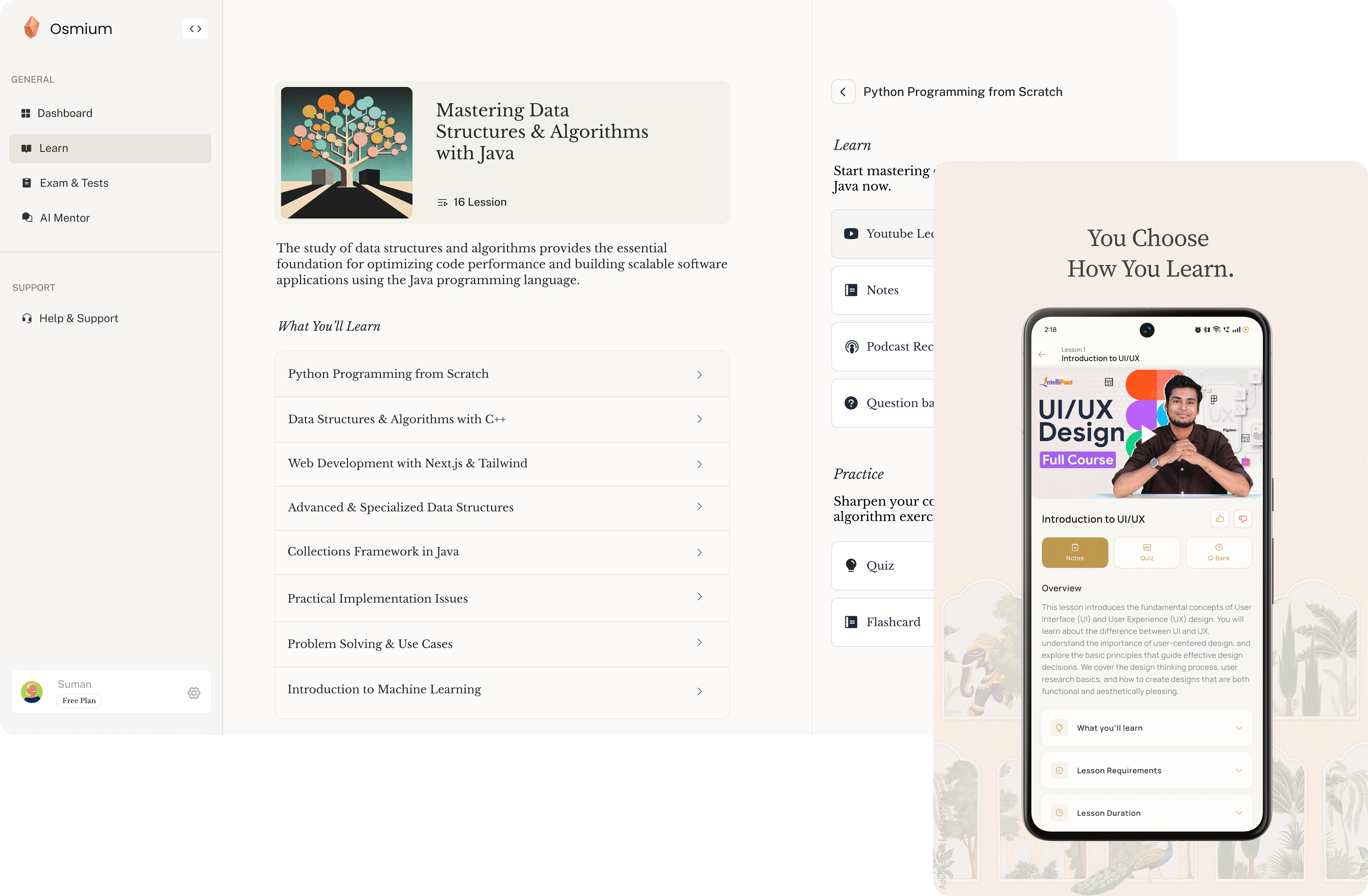 Osmium is an AI-powered learning platform for Indian students, offering lectures, tests, notes, guidance, and support in one place